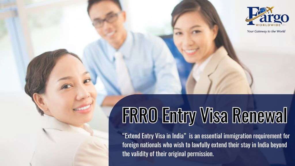 FRRO Entry Visa Renewal is an essential immigration requirement for foreign nationals who wish to lawfully extend their stay in India beyond the validity of their original permission. At Fargo Worldwide, we specialize in providing Professional FRRO Entry Visa Services that are accurate, transparent, and aligned with current regulatory practices. Our experienced consultants assist individuals in understanding FRRO Entry Visa conditions while ensuring that documentation, timelines, and procedural steps are handled with precision. By choosing Fargo Worldwide, applicants gain access to expert support designed to simplify complex immigration formalities.